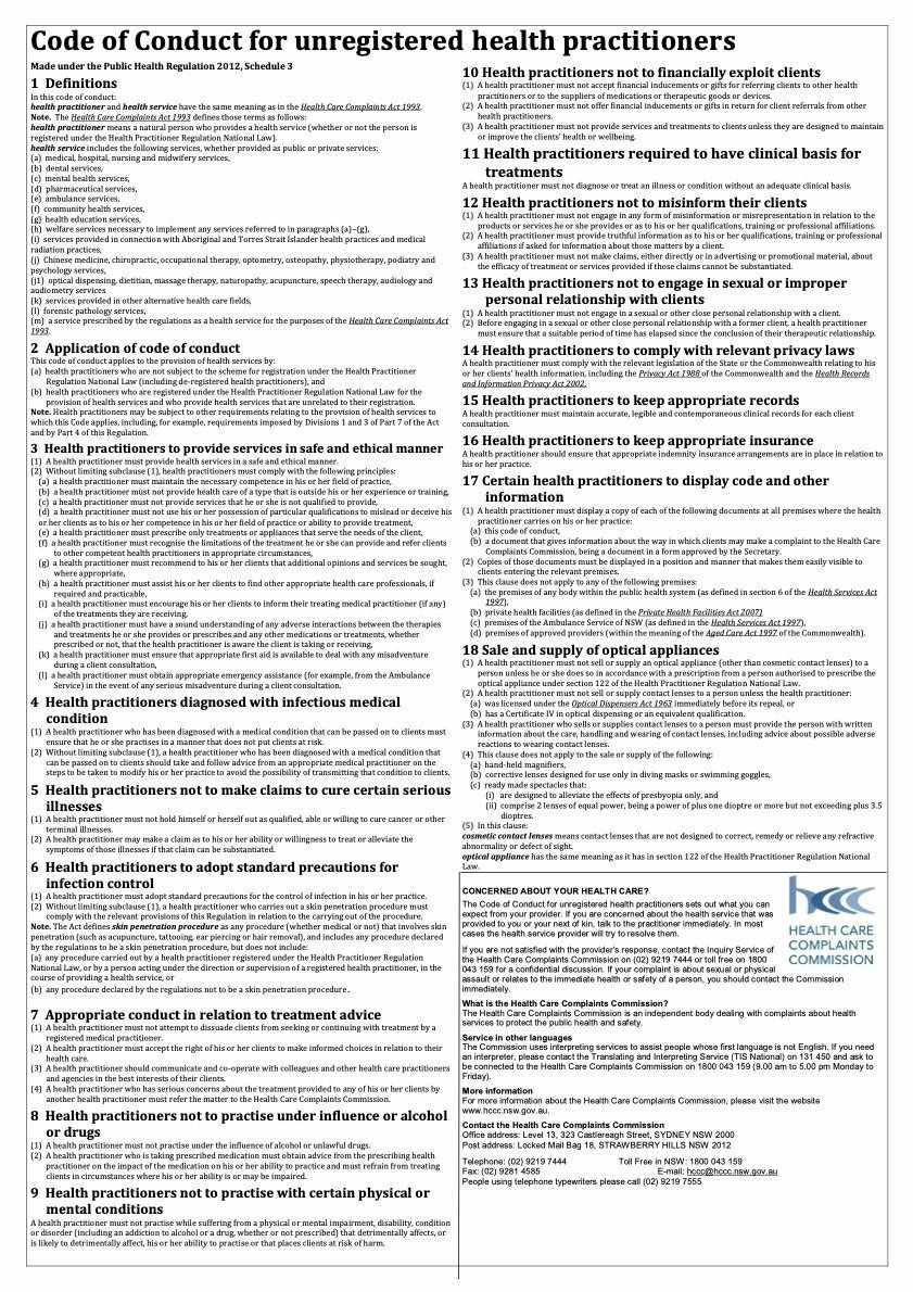 She is an accredited Naturopath & Nutritionist with the Australian Traditional Medicine Society (ATMS) and abides by the ATMS Code of Conduct as well as the Code of Conduct for Unregistered Health Practitioners as set out by the NSW Government (displayed below).